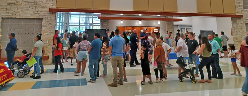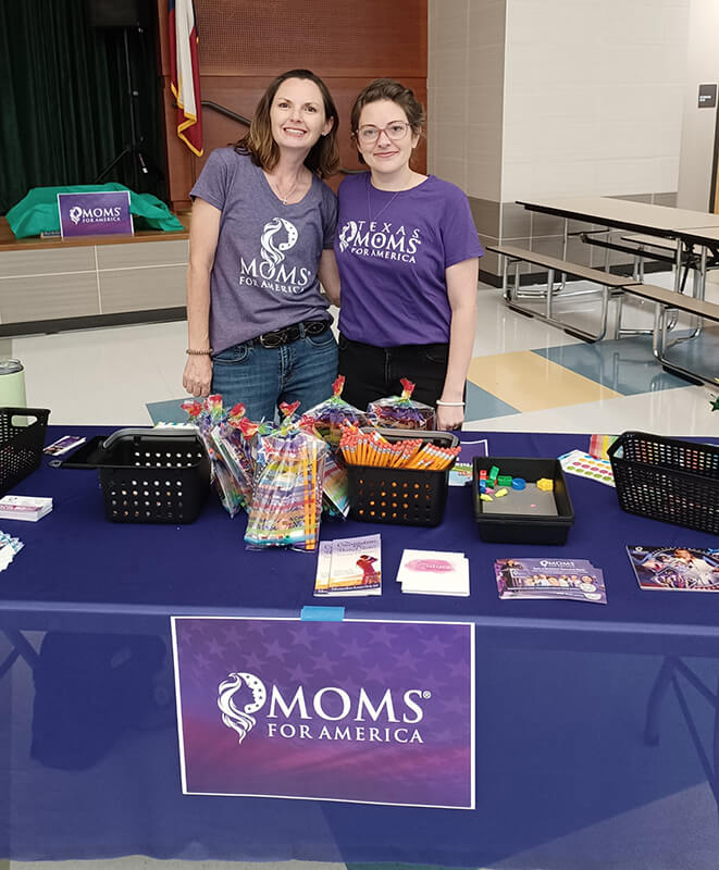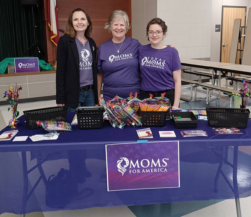 On August 9, 2023, Tressie Roark (Washington County Moms for America Group Leader), with the help of Suzanne Flammer (Brenham Moms for America School District Ambassador) and Macey D. (Burleson County Moms for America Group Leader), hosted an informational table at the “Back to School” event in Washington County, Texas. Suzanne and Macey helped with passing out school supplies and answering questions. There were approximately 500 families in attendance. In the words of Tressie, “We look forward to creating a wonderful relationship with the schools in the County.”