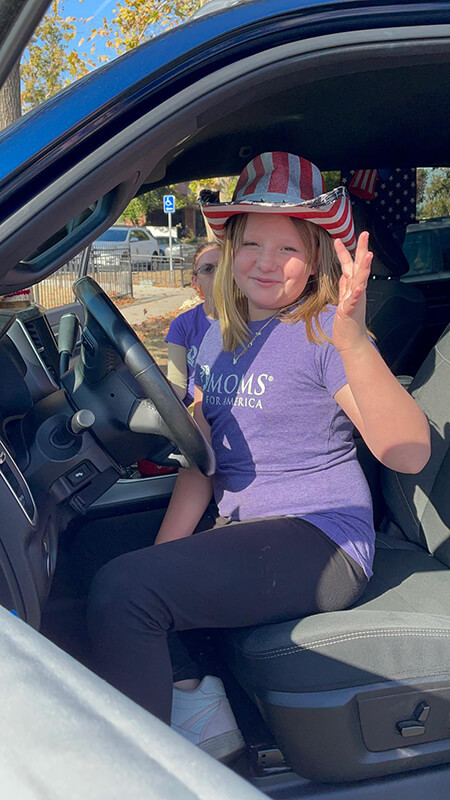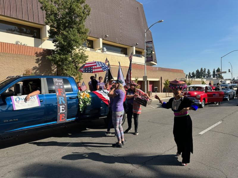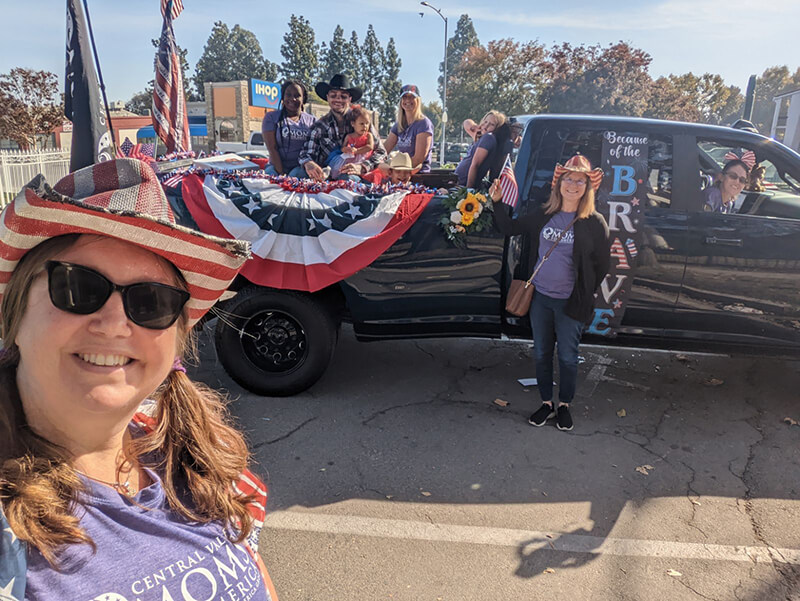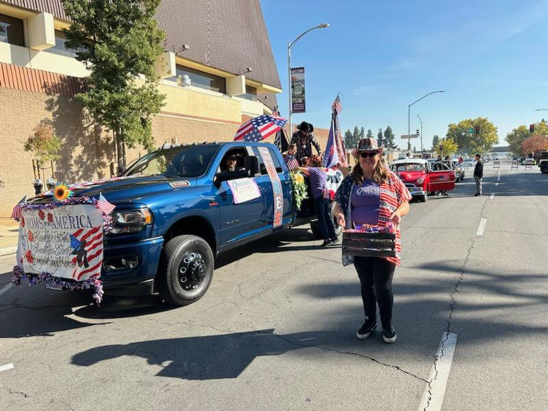 On November 11, 2023, Dawn Wells and her Central Valley Moms for America group participated in the Central Valley Veterans Parade in downtown Fresno, California. Dawn’s group handed out hundreds of flags to families watching the parade and they were one out of 111 entries.