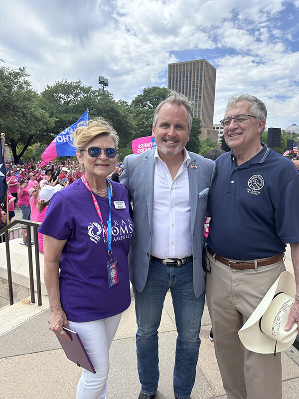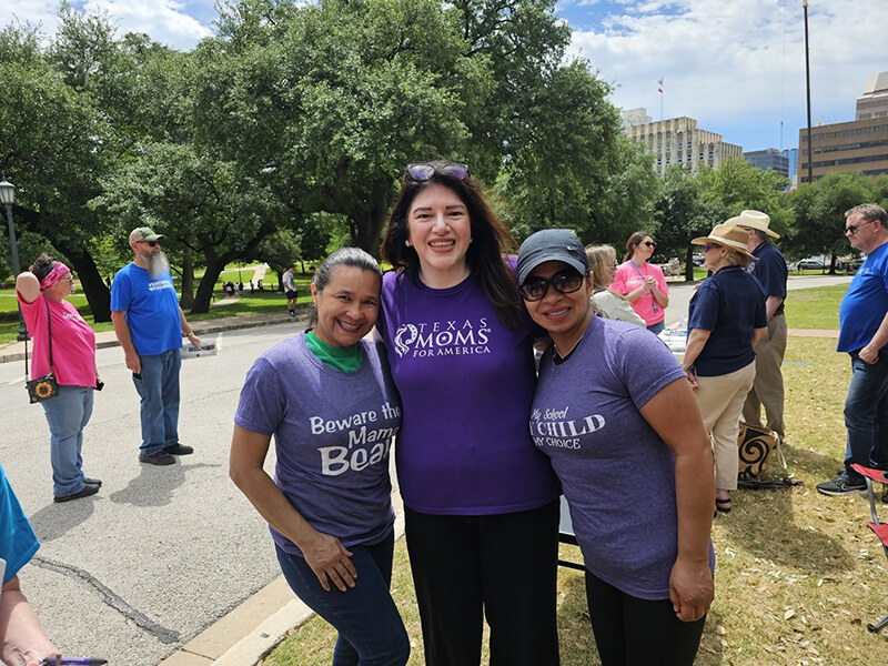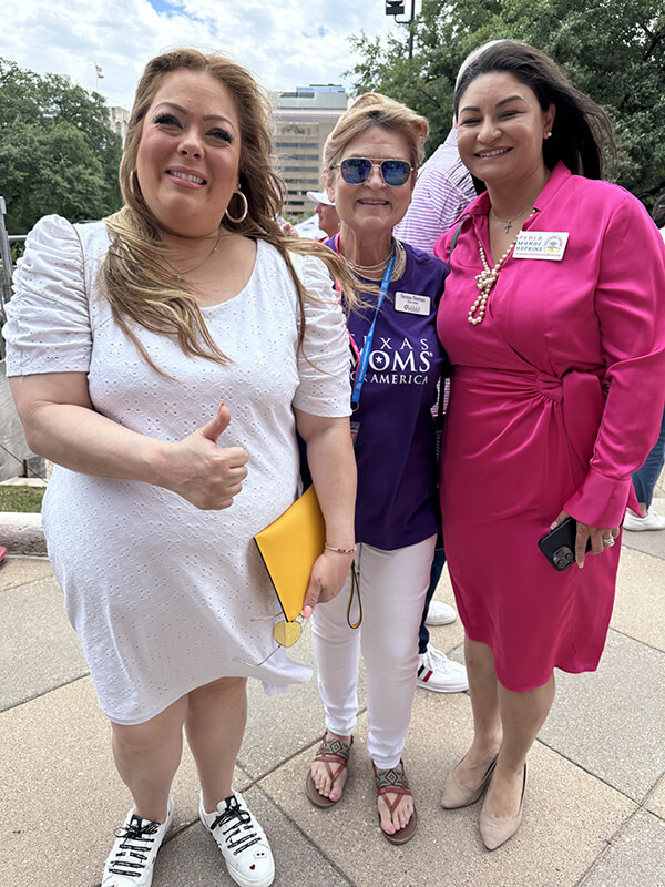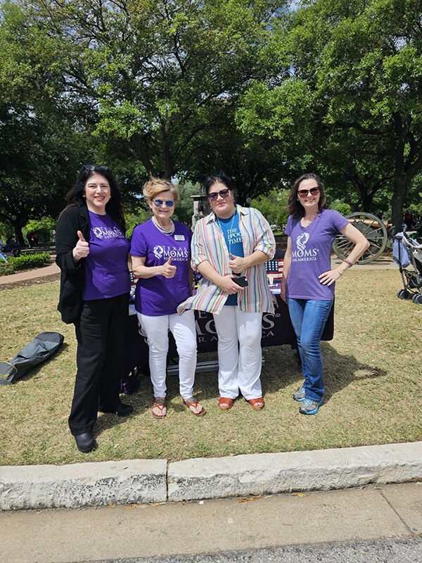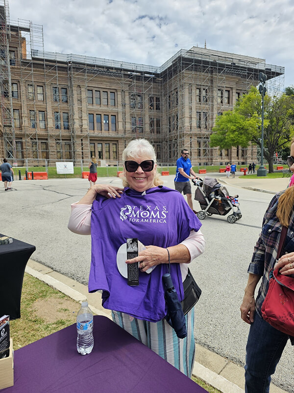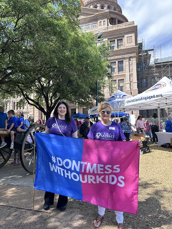 On April 13, 2024, Teresa Thomas (Texas Moms for America), Martha Fierro (Central Harris County Moms for America) and Tressie Roark (Washington County Moms for America) attended and participated in the “Don’t Mess with our Kids” event in Austin Texas. They set up a Moms for America table on the capital grounds and spread the mission of Moms for America.