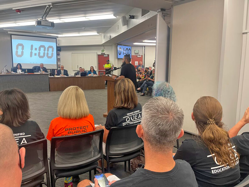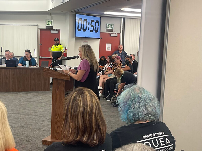 On August 17, 2023, State Liaison Barbie George (California Moms for America) attended the Orange Unified School District Board Discussion, where a policy was being discussed that would require certain school officials to notify parents if their child is requesting to be identified or treated as a different sex or gender. The attendees and the board were divided over whether it was a parental right to be notified. At the end, Rick Ledesma (Board president) stated that the policy will be further reviewed to address concerns, raised by trustees, and a final version would be discussed and probably voted on at the next school board meeting on September 7th, 2023.