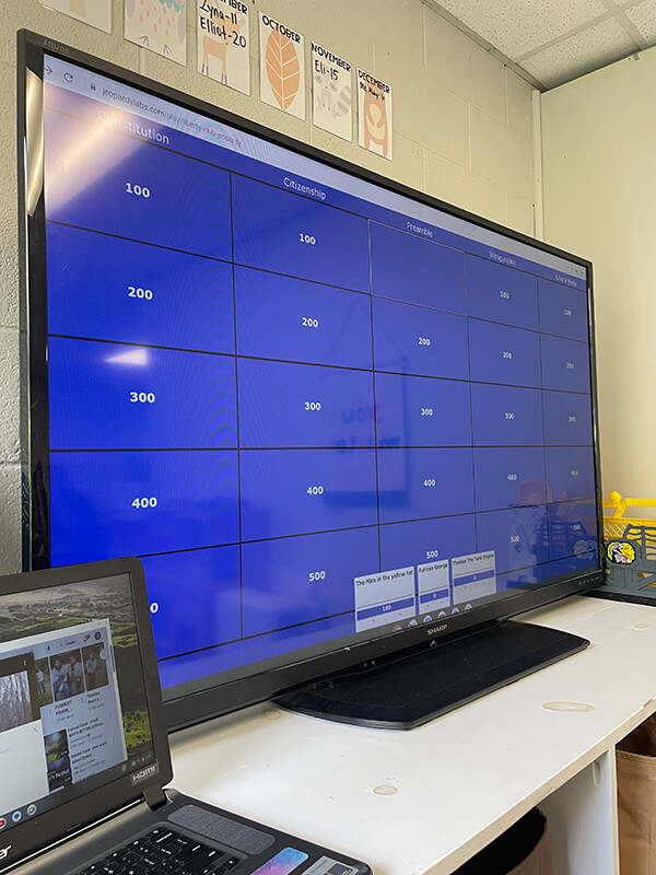 Our final meeting for the year was on April 28th. We celebrated our last meeting with pizza and cupcakes. The group broke up into three teams and competed in a Liberty Jeopardy game. Topics included: the Constitution, Citizenship, Preamble, Inauguration and Liberalism. The youngest team ran away with the lead scoring 4400 points! It was a fun ending and review to what the students learned this year!