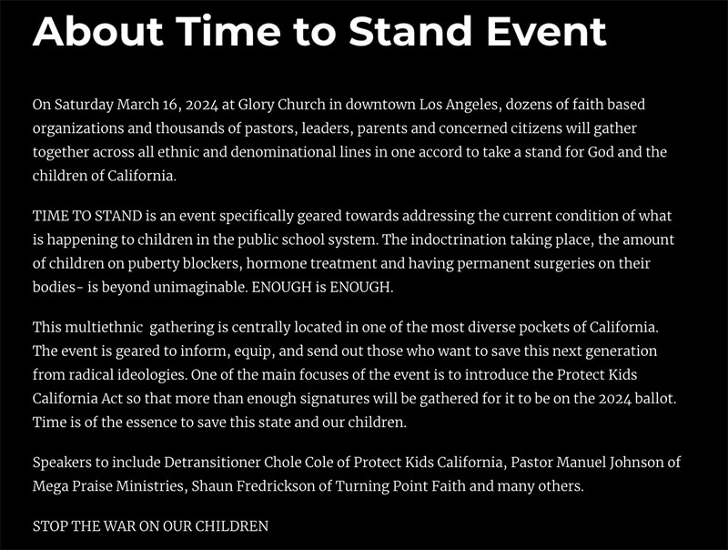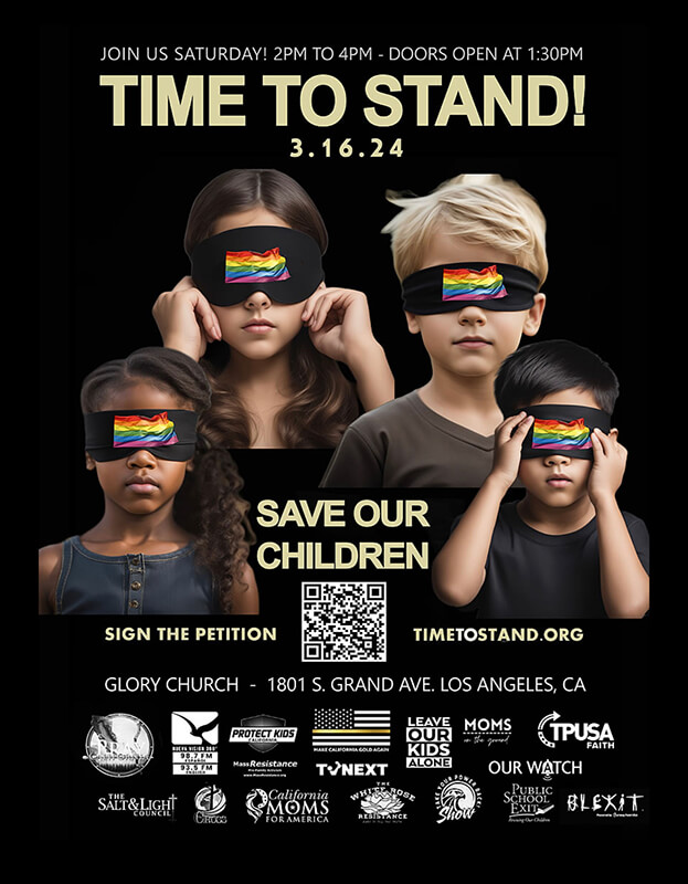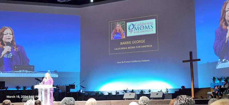 On March 16, 2024, State Liaison Barbie George (California Moms for America) participated and represented Moms for America in the ‘Time to Stand’ event at Glory Church in downtown Los Angeles, California. At this event there were dozens of faith-based organizations and thousands of pastors, leaders, parents and concerned citizens gathered across all ethnic and denominational lines in one accord to take a stand for God and the children of California. The event is geared to inform, equip, and send out those who want to save this next generation from radical ideologies. One of the main focuses of the event was to introduce the Protect Kids California Act so that more than enough signatures will be gathered for it to be on the 2024 ballot. Time is of the essence to save this state and our children.