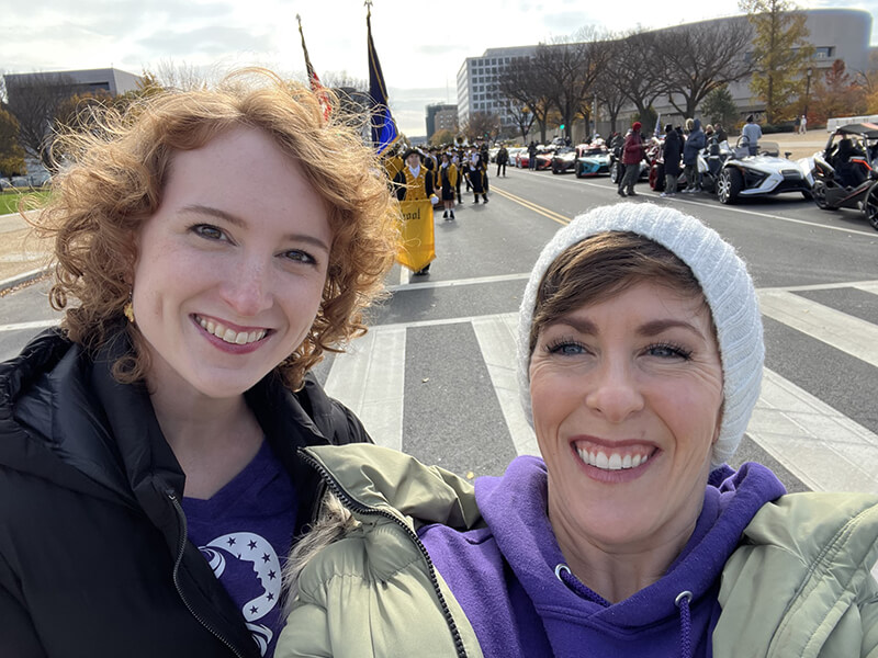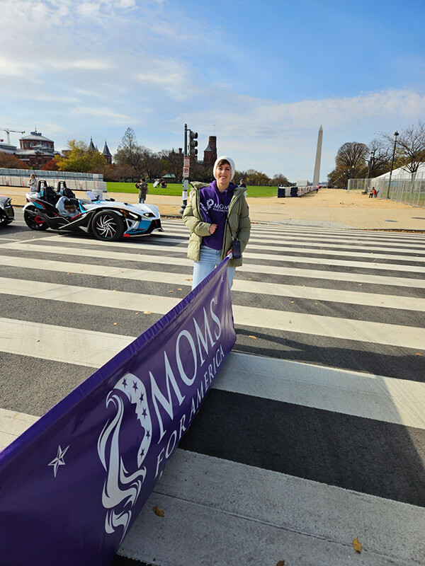 On November 12, 2023, State Liaison Tyler Ohta (Virginia Moms for America) participated in the first ever National Veterans Day Parade in Washington, D.C. Tyler and Axia (Moms for America group member) held a Moms for America banner throughout the parade route and handed out three Moms for America T-shirts and were announced from the grand stand of the parade.