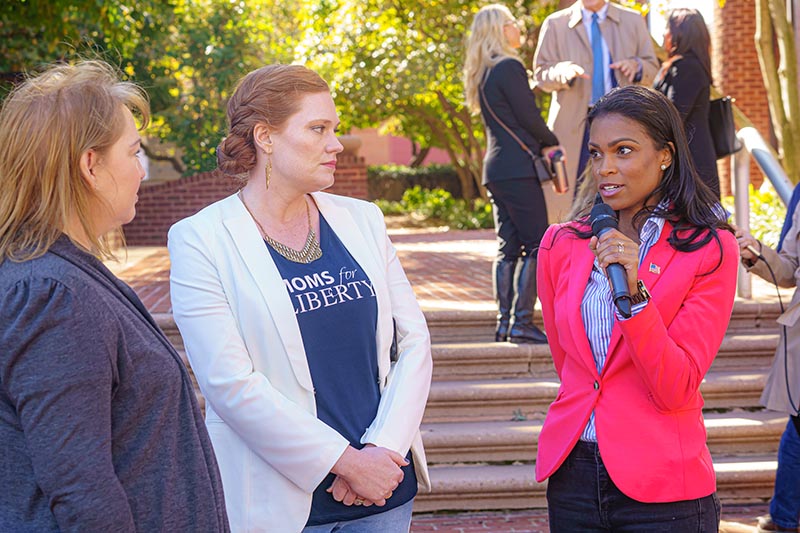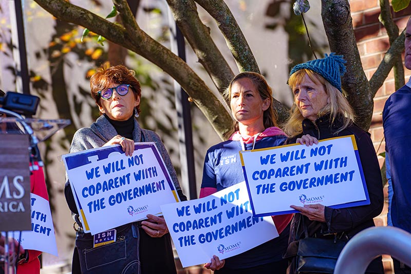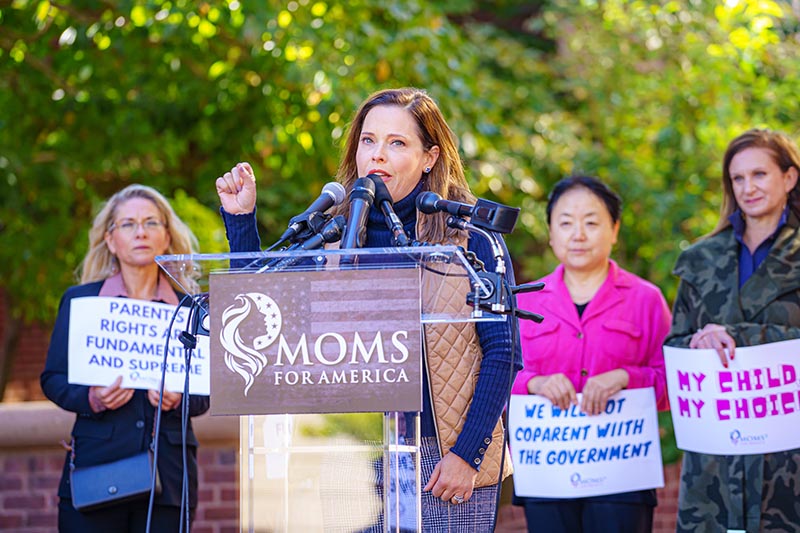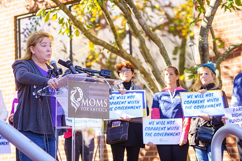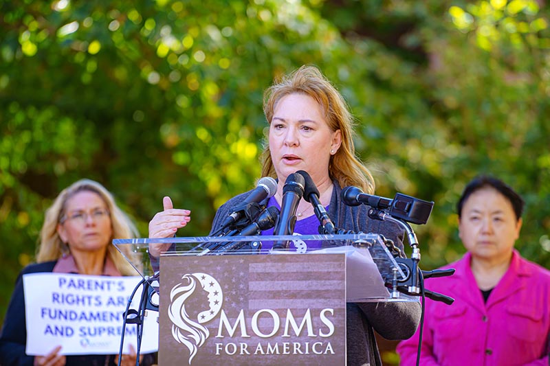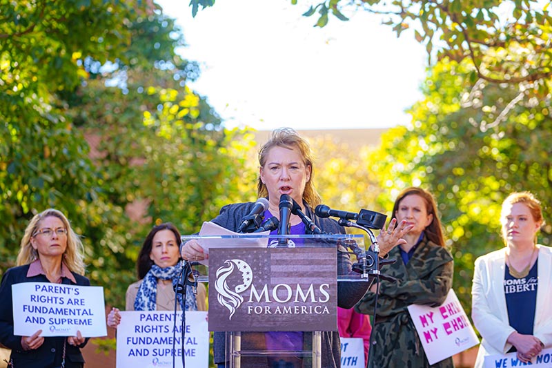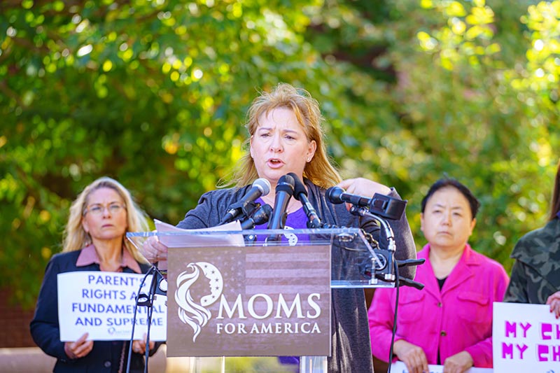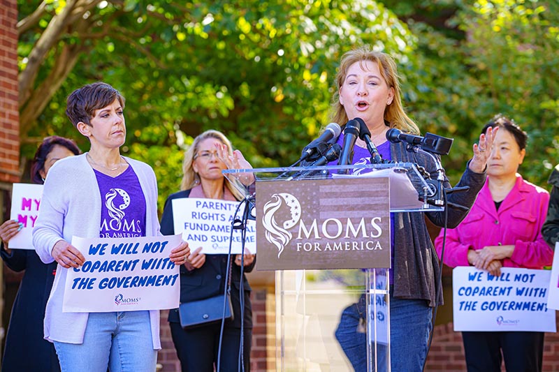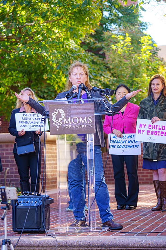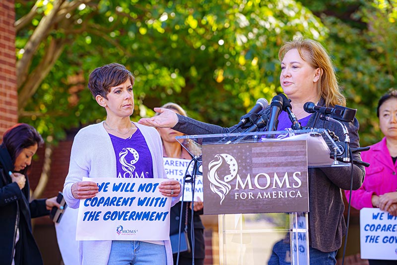 Moms for America, along with a coalition of organizational leaders and influential moms held a press conference in front of the Headquarters of the National School Board Association in Alexandria, Virginia October 27, 2021.